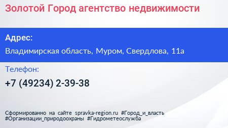 Золотой Город, агентство недвижимости по адресу Владимирская область, Муром, Свердлова, 11а в дальнейшем Организация, размещена в следующих категориях: