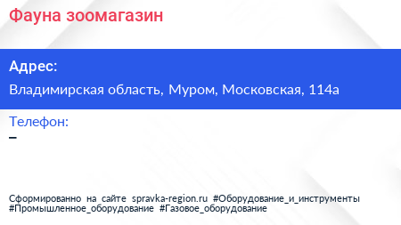 Фауна, зоомагазин по адресу Владимирская область, Муром, Московская, 114а в дальнейшем Организация, размещена в следующих категориях: