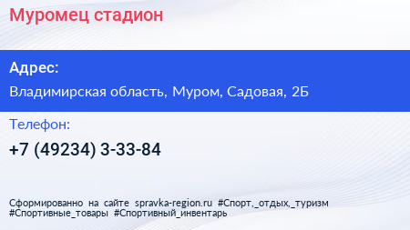 Муромец, стадион по адресу Владимирская область, Муром, Садовая, 2Б в дальнейшем Организация, размещена в следующих категориях: