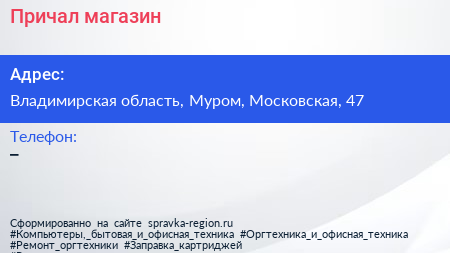 Причал, магазин по адресу Владимирская область, Муром, Московская, 47 в дальнейшем Организация, размещена в следующих категориях:
