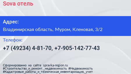 Sova, отель по адресу Владимирская область, Муром, Кленовая, 3/2 в дальнейшем Организация, размещена в следующих категориях: