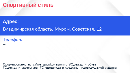 Спортивный стиль по адресу Владимирская область, Муром, Советская, 12 в дальнейшем Организация, размещена в следующих категориях: