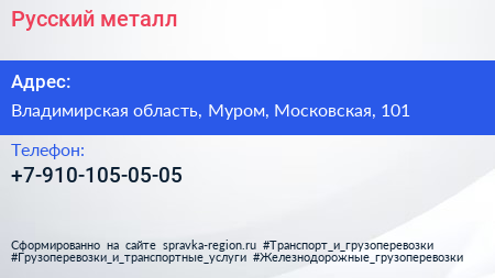 Русский металл по адресу Владимирская область, Муром, Московская, 101 в дальнейшем Организация, размещена в следующих категориях: