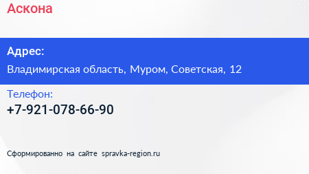 Аскона по адресу Владимирская область, Муром, Советская, 12 в дальнейшем Организация, размещена в следующих категориях: