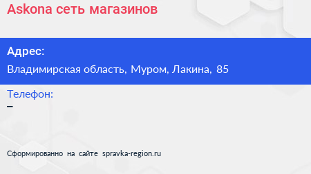 Askona, сеть магазинов по адресу Владимирская область, Муром, Лакина, 85 в дальнейшем Организация, размещена в следующих категориях: