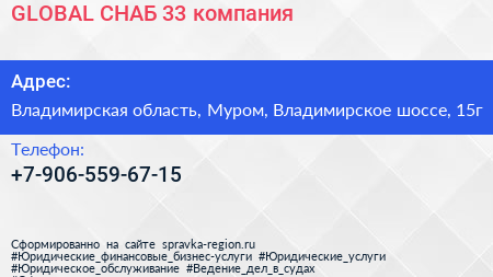 GLOBAL СНАБ 33, компания по адресу Владимирская область, Муром, Владимирское шоссе, 15г в дальнейшем Организация, размещена в следующих категориях: