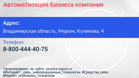 Автоматизация Бизнеса, компания по адресу Владимирская область, Муром, Куликова, 4 в дальнейшем Организация, размещена в следующих категориях: