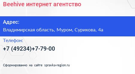 Beehive, интернет-агентство по адресу Владимирская область, Муром, Сурикова, 4а в дальнейшем Организация, размещена в следующих категориях: