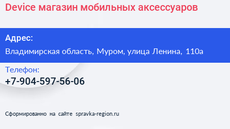 Device, магазин мобильных аксессуаров по адресу Владимирская область, Муром, улица Ленина, 110а в дальнейшем Организация, размещена в следующих категориях: