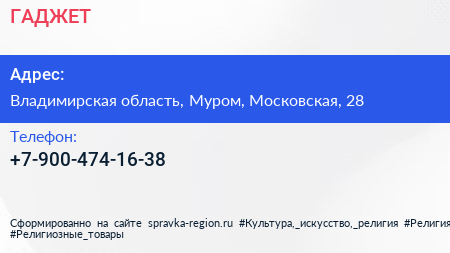 ГАДЖЕТ по адресу Владимирская область, Муром, Московская, 28 в дальнейшем Организация, размещена в следующих категориях: