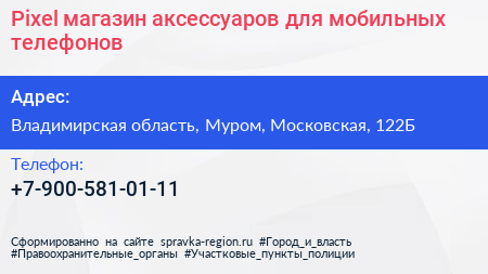 Pixel, магазин аксессуаров для мобильных телефонов по адресу Владимирская область, Муром, Московская, 122Б в дальнейшем Организация, размещена в следующих категориях: