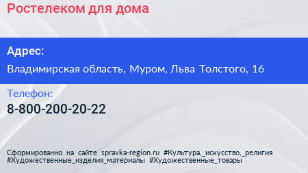 Ростелеком для дома по адресу Владимирская область, Муром, Льва Толстого, 16 в дальнейшем Организация, размещена в следующих категориях: