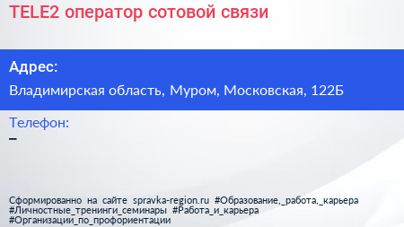 TELE2, оператор сотовой связи по адресу Владимирская область, Муром, Московская, 122Б в дальнейшем Организация, размещена в следующих категориях: