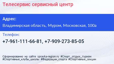 Телесервис, сервисный центр по адресу Владимирская область, Муром, Московская, 100а в дальнейшем Организация, размещена в следующих категориях: