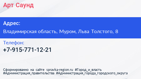 Арт Саунд по адресу Владимирская область, Муром, Льва Толстого, 8 в дальнейшем Организация, размещена в следующих категориях: