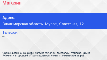 Магазин по адресу Владимирская область, Муром, Советская, 12 в дальнейшем Организация, размещена в следующих категориях: