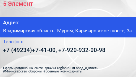 5 Элемент по адресу Владимирская область, Муром, Карачаровское шоссе, 3а в дальнейшем Организация, размещена в следующих категориях: