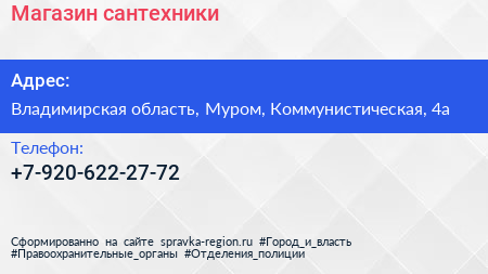 Магазин сантехники по адресу Владимирская область, Муром, Коммунистическая, 4а в дальнейшем Организация, размещена в следующих категориях:
