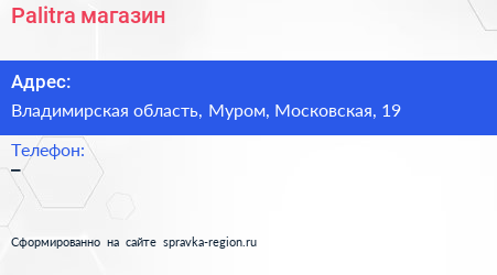 Palitra, магазин по адресу Владимирская область, Муром, Московская, 19 в дальнейшем Организация, размещена в следующих категориях: