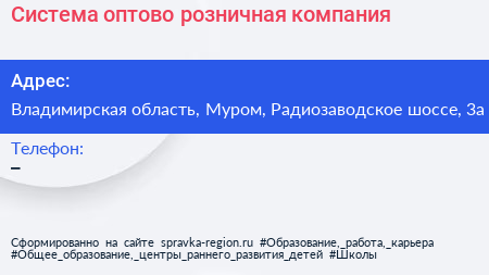Система, оптово-розничная компания по адресу Владимирская область, Муром, Радиозаводское шоссе, 3а в дальнейшем Организация, размещена в следующих категориях: