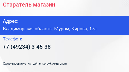 Старатель, магазин по адресу Владимирская область, Муром, Кирова, 17а в дальнейшем Организация, размещена в следующих категориях: