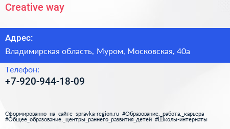 Creative way по адресу Владимирская область, Муром, Московская, 40а в дальнейшем Организация, размещена в следующих категориях: