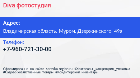 Diva, фотостудия по адресу Владимирская область, Муром, Дзержинского, 49а в дальнейшем Организация, размещена в следующих категориях: