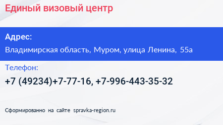 Единый визовый центр по адресу Владимирская область, Муром, улица Ленина, 55а в дальнейшем Организация, размещена в следующих категориях: