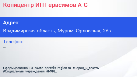 Копицентр, ИП Герасимов А.С. по адресу Владимирская область, Муром, Орловская, 26в в дальнейшем Организация, размещена в следующих категориях:
