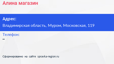 Алина, магазин по адресу Владимирская область, Муром, Московская, 119 в дальнейшем Организация, размещена в следующих категориях: