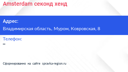 Amsterdam, секонд-хенд по адресу Владимирская область, Муром, Ковровская, 8 в дальнейшем Организация, размещена в следующих категориях: