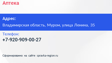 Аптека по адресу Владимирская область, Муром, улица Ленина, 35 в дальнейшем Организация, размещена в следующих категориях: