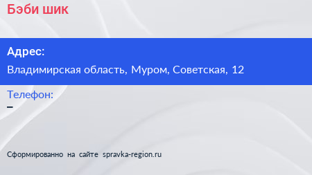 Бэби-шик по адресу Владимирская область, Муром, Советская, 12 в дальнейшем Организация, размещена в следующих категориях: