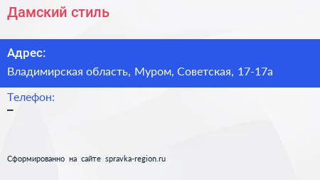 Дамский стиль по адресу Владимирская область, Муром, Советская, 17-17а в дальнейшем Организация, размещена в следующих категориях: