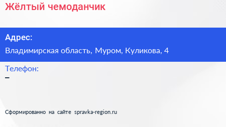 Жёлтый чемоданчик по адресу Владимирская область, Муром, Куликова, 4 в дальнейшем Организация, размещена в следующих категориях: