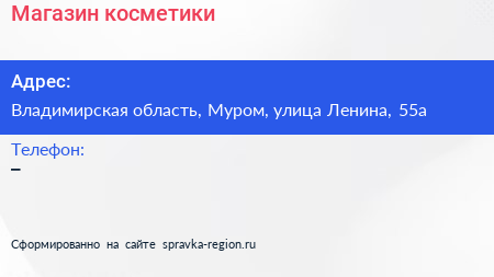 Магазин косметики по адресу Владимирская область, Муром, улица Ленина, 55а в дальнейшем Организация, размещена в следующих категориях: