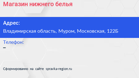 Магазин нижнего белья по адресу Владимирская область, Муром, Московская, 122Б в дальнейшем Организация, размещена в следующих категориях: