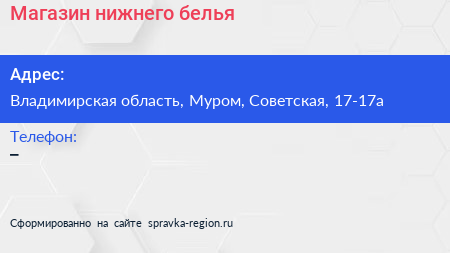 Магазин нижнего белья по адресу Владимирская область, Муром, Советская, 17-17а в дальнейшем Организация, размещена в следующих категориях: