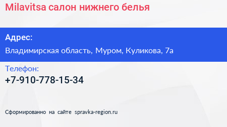 Milavitsa, салон нижнего белья по адресу Владимирская область, Муром, Куликова, 7а в дальнейшем Организация, размещена в следующих категориях:
