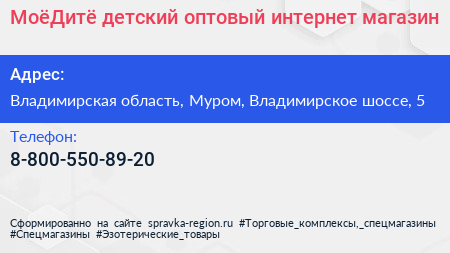МоёДитё, детский оптовый интернет-магазин по адресу Владимирская область, Муром, Владимирское шоссе, 5 в дальнейшем Организация, размещена в следующих категориях: