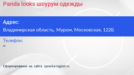 Panda looks, шоурум одежды по адресу Владимирская область, Муром, Московская, 122Б в дальнейшем Организация, размещена в следующих категориях: