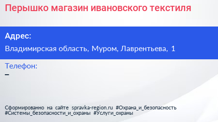 Перышко, магазин ивановского текстиля по адресу Владимирская область, Муром, Лаврентьева, 1 в дальнейшем Организация, размещена в следующих категориях: