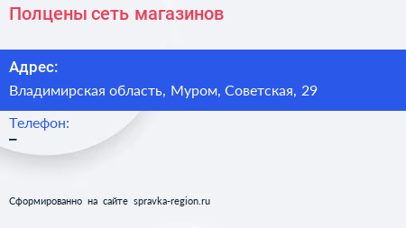 Полцены, сеть магазинов по адресу Владимирская область, Муром, Советская, 29 в дальнейшем Организация, размещена в следующих категориях: