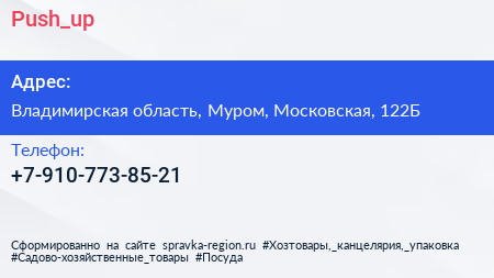 Push_up по адресу Владимирская область, Муром, Московская, 122Б в дальнейшем Организация, размещена в следующих категориях: