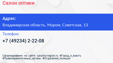 Салон оптики по адресу Владимирская область, Муром, Советская, 13 в дальнейшем Организация, размещена в следующих категориях: