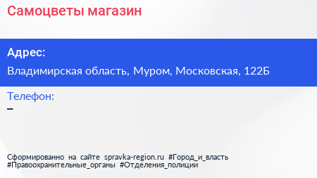 Самоцветы, магазин по адресу Владимирская область, Муром, Московская, 122Б в дальнейшем Организация, размещена в следующих категориях: