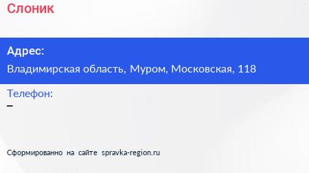 Слоник по адресу Владимирская область, Муром, Московская, 118 в дальнейшем Организация, размещена в следующих категориях: