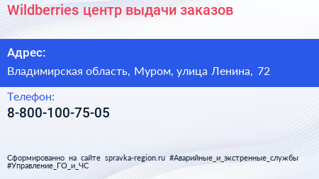 Wildberries, центр выдачи заказов по адресу Владимирская область, Муром, улица Ленина, 72 в дальнейшем Организация, размещена в следующих категориях: