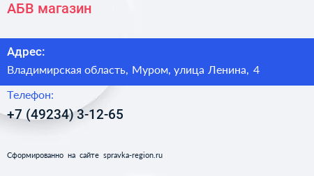 АБВ, магазин по адресу Владимирская область, Муром, улица Ленина, 4 в дальнейшем Организация, размещена в следующих категориях: