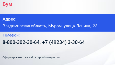 Бум по адресу Владимирская область, Муром, улица Ленина, 23 в дальнейшем Организация, размещена в следующих категориях: